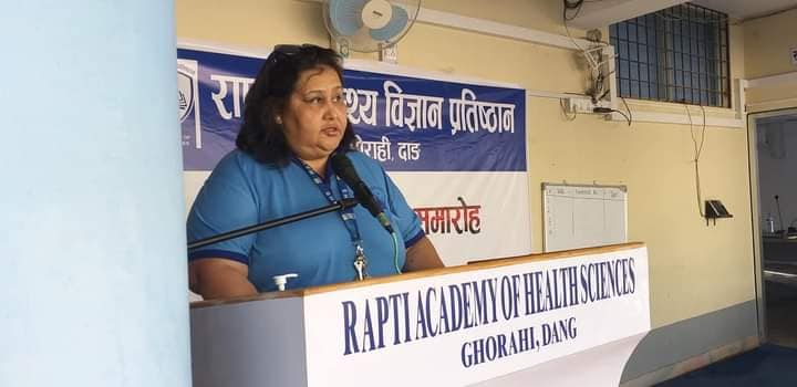 दाङ । राप्ती स्वास्थ्य विज्ञान प्रतिष्ठानले मंगलबार आफ्नै प्रांगणमा तेस्रो वार्षिकोत्सव मनाइरहंदा कुनै हर्सोल्लास देखिएन । प्रतिष्ठानका पदाधिकारी, प्रहरी प्रमुख, नेपाली सेनाका गुल्मपती, प्रतिष्ठान सल्लाहकार समितिका संयोजक सहित थोरै सदस्य, दुई/तीन जना पत्रकार तथा केही कर्मचारी र चिकित्सहरुबीचकै उपस्थितिमा तेस्रो वार्षिकोत्सव सम्पन्न भयो ।