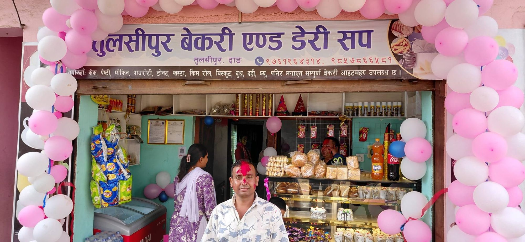 तुलसीपुर । तुलसीपुर उपमहानगरपालिका–५ सल्यान रोड, दूरसञ्चार चोकमा ‘तुलसीपुर बेकरी एण्ड डेरी सप’ सञ्चालनमा आएको छ। विदेशमा लामो समय काम गरेर स्वदेश फर्किएका देवेन्द्र भण्डारीले नेपालमै केही गर्ने उद्देश्यका साथ बेकरी तथा डेरी व्यवसाय सुरु गरेका हुन्।