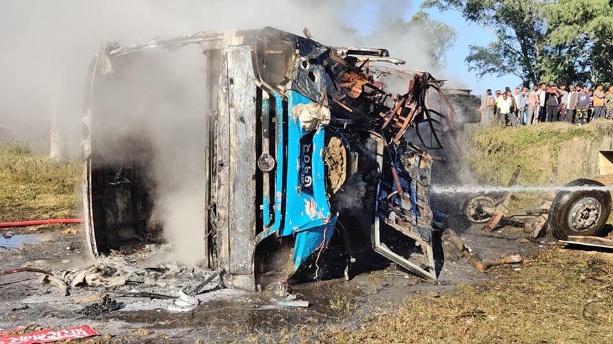 दाङबाट विराटनगरतर्फ जाँदै गरेको बस दुर्घटना हुँदा १२ जना घाइते